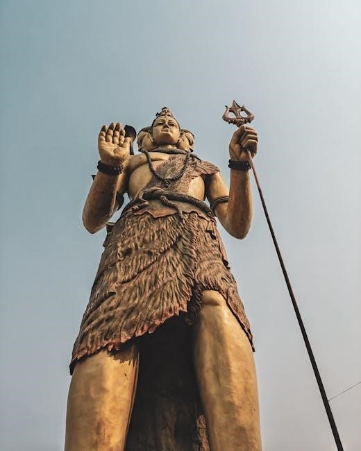 From this ocean arose a cosmic egg‚ or Hiranyagarbha‚ which split into two halves – one becoming heaven and the other earth; Shiva then manifested in various forms‚ including Sadashiva‚ Ishvara‚ and Rudra‚ each responsible for different aspects of creation and preservation․ The story elaborates on the creation of time‚ space‚ and the various beings inhabiting the universe․
