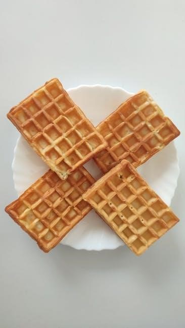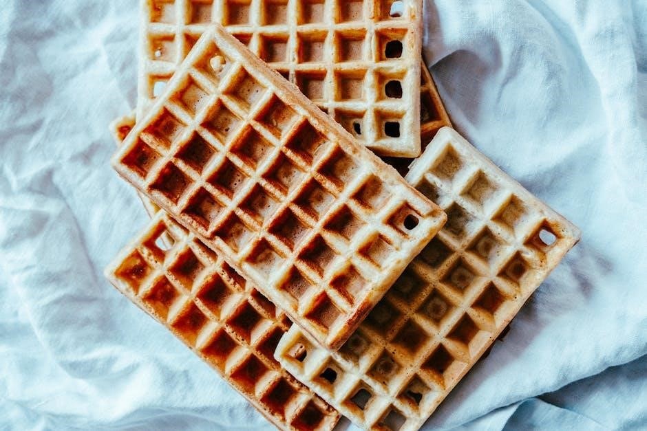 Determining waffle doneness is key to achieving the perfect texture․ Visually, a properly cooked waffle will be golden brown and appear crisp around the edges․ The steaming should have significantly subsided, indicating sufficient internal cooking․